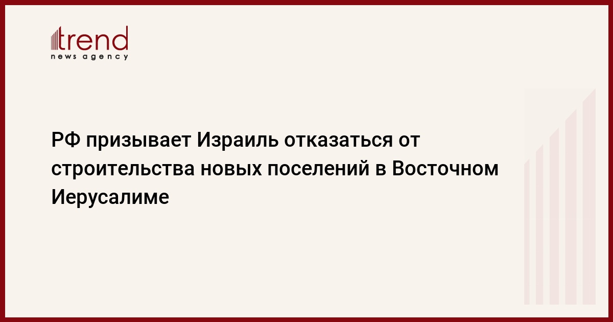 Как говорится в документе, Россия вновь настойчиво призывает Израиль "воздерживаться от любых односторонних действий, предрешающих исход переговорного процесса по вопросам окончательного статуса палестинских территорий, включая Восточный Иерусалим".