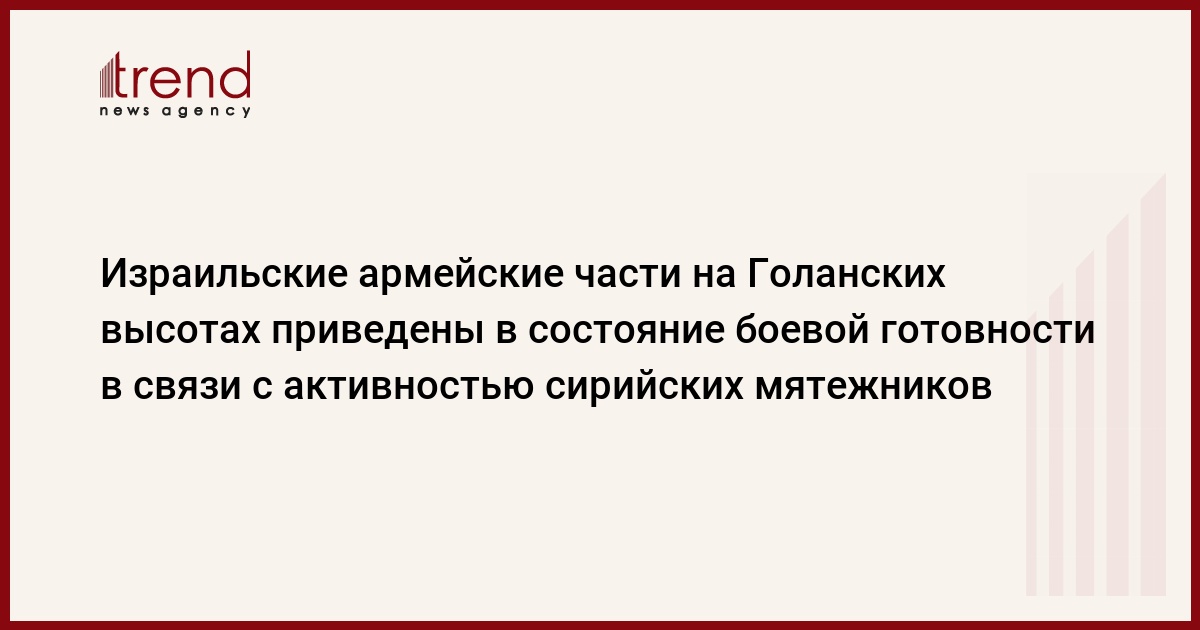 Части Армии обороны Израиля на Голанских высотах приведены в состояние полной боевой готовности, пишет ИТАР-ТАСС со ссылкой на израильское радио.