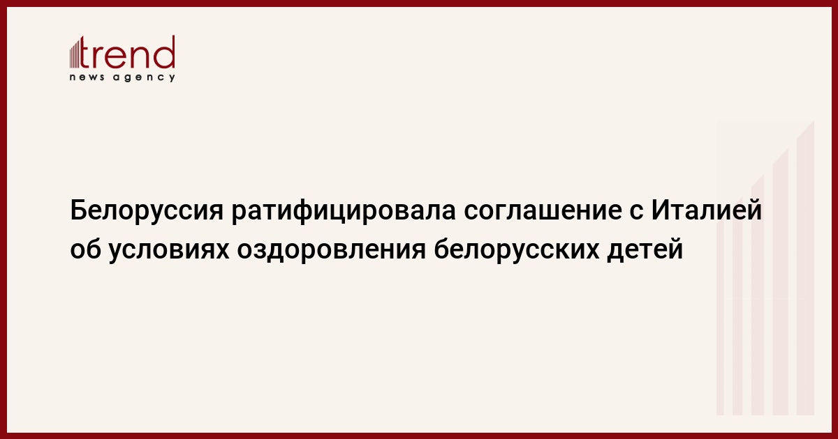 Парламент Белоруссии сегодня ратифицировал межправительственное соглашение с Италией об условиях оздоровления на основе безвозмездной помощи белорусских детей в этой стране, передает ИТАР-ТАСС .