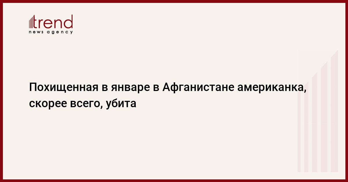 Похищенная 26 января в афганском городе Кандагар работница некоммерческой организации Asian Rural Life Development Foundation (ARLDF) Сид Мизел скорее всего убита талибами, сообщает РИА Новости со ссылкой на сайт ARLDF.