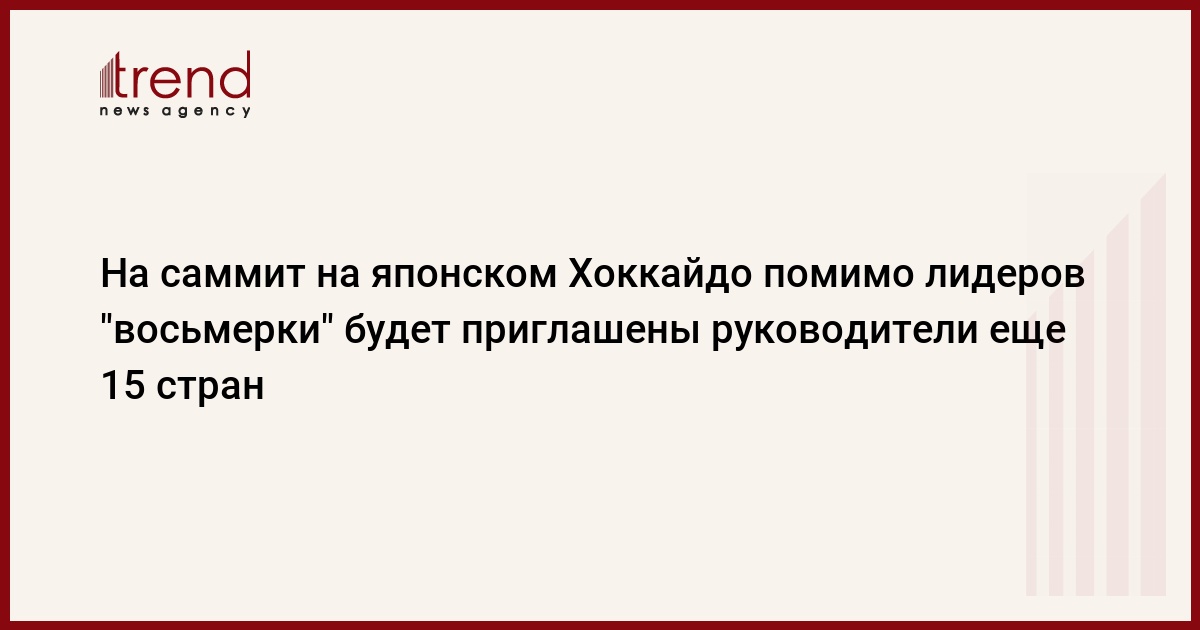 На совещания "восьмерки" лидеров других стран стали приглашать с 2000 года, когда саммит проходил на южном японском острове Окинава. Нынешняя встреча состоится у живописного горного озера Тоя на самом северном японском острове Хоккайдо, который непосредственно примыкает к России.
