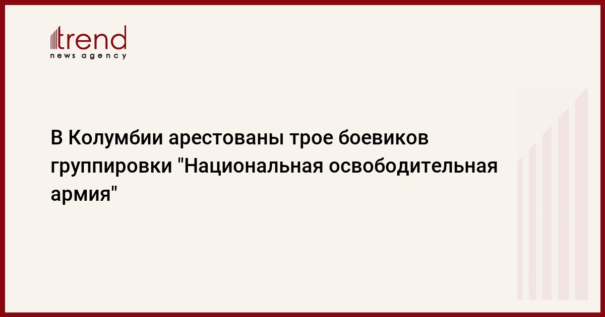 Полиция Колумбии арестовала троих членов экстремистской группировки "Национальная освободительная армия" (ELN), передает РБК .
