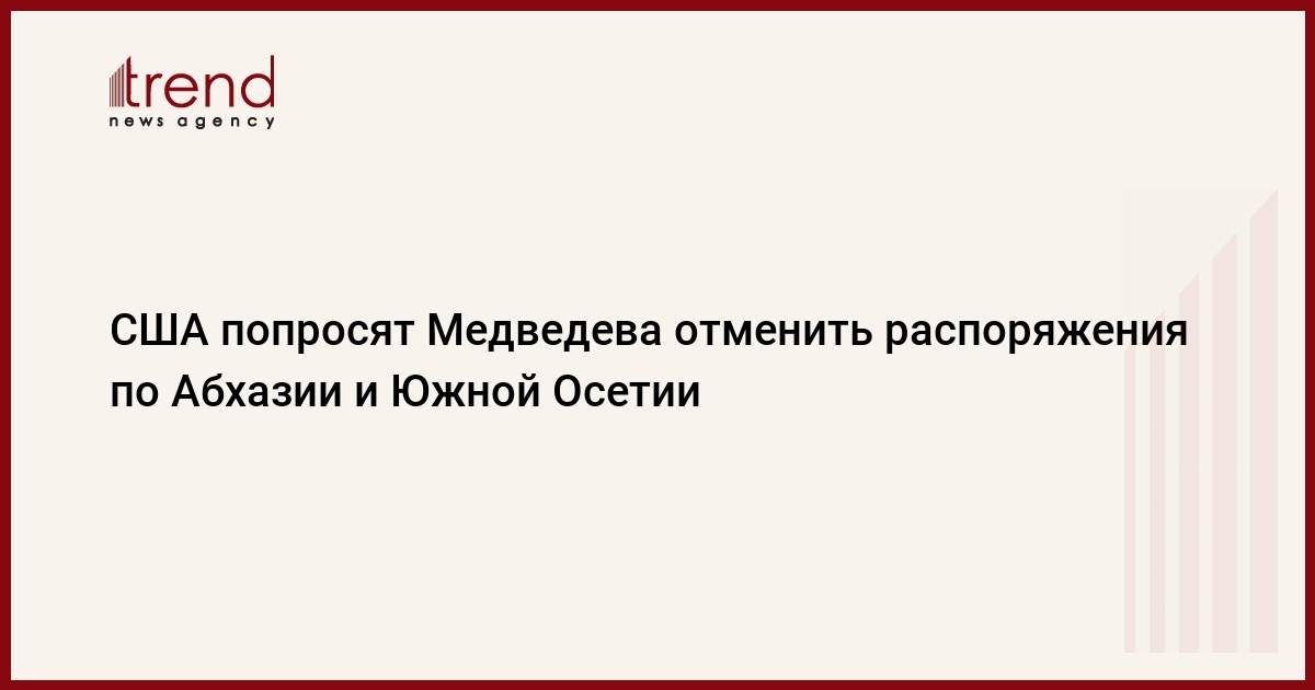Администрация Джорджа Буша будет просить президента РФ Дмитрия Медведева отменить распоряжения его предшественника Владимира Путина по Абхазии и Южной Осетии, заявил в четверг в Вашингтоне исполняющий обязанности заместителя госсекретаря США по политическим вопросам Дэниэл Фрид, передает РИА Новости .