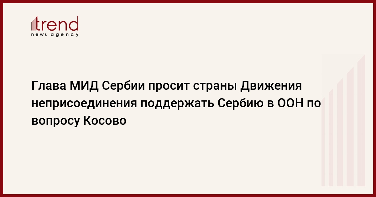 Министр иностранных дел Сербии Вук Еремич обратился к делегатам стран Движения неприсоединения с просьбой поддержать его страну в Генеральной Ассамблее ООН по вопросу соответствия международному закону объявления независимости Косово. Об этом сообщает белградская радиостанция B92, передает РБК .