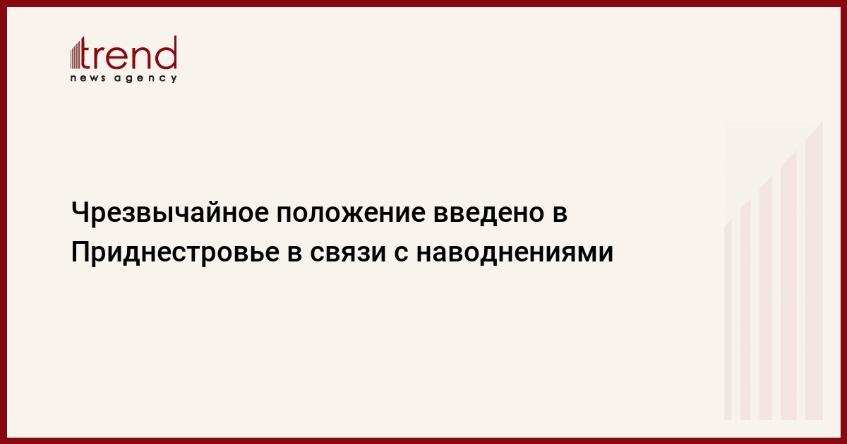 В Приднестровье в связи с наводнениями введено чрезвычайное положение сроком на 15 суток, передает БЕЛТА.