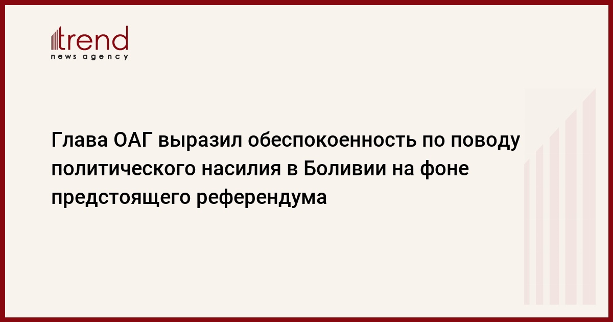 Глава Организации американских государств (ОАГ) Хосе Мигель Инсулза выразил обеспокоенность по поводу политического насилия в Боливии на фоне предстоящего в стране референдума. Он добавил, что "насилие, конфронтация и серьезные политическое разногласия не смогут привести Боливию к мирному разрешению кризиса". М.Инсулза также призвал все стороны к мирномуголосованию на референдуме, который состоится 10 августа с.г., передает Associated Press.
