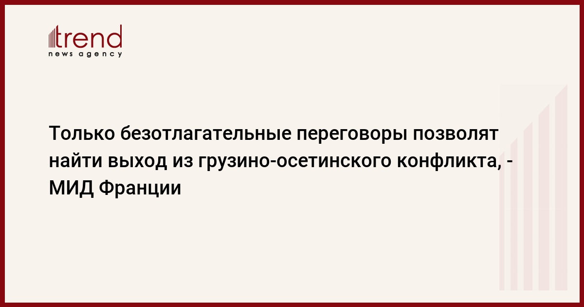 Только безотлагательное возобновление переговоров позволит найти выход из грузино-осетинского конфликта. Об этом говорится в распространенном сегодня посольством Франции сообщении Министерства иностранных дел этой страны, передает РБК .
