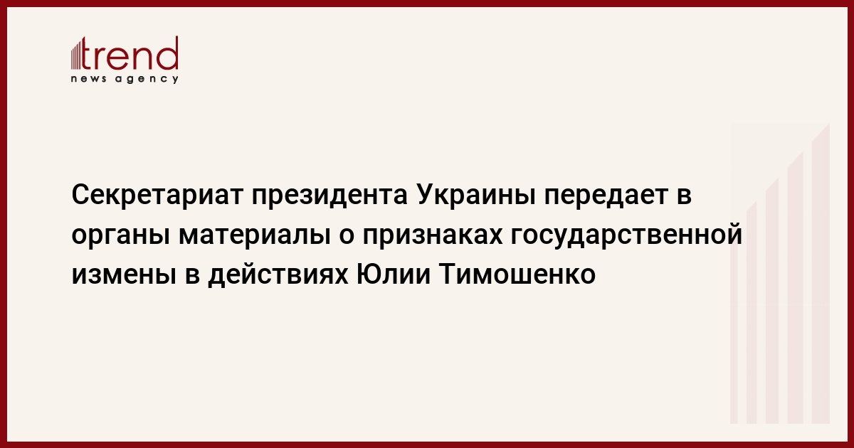 Украина, Киев 18 августа /корр. Trend З.Новосвитский/ В Секретариате президента Украины заявляют, что передают в правоохранительные органы для детального изучения материалы о признаках государственной измены и политической коррупции в действиях действующего премьер-министра Юлии Тимошенко. Об этом сообщает пресс-служба президента, со ссылкой на заместителя главы Секретариата президента Украины Андрея Кислинского.