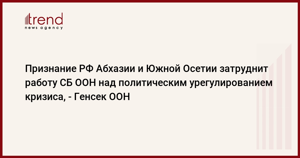 Генеральный секретарь ООН Пан Ги Мун опасается, что решение РФ признать независимость Абхазии и Южной Осетии затруднит процесс выработки политического урегулирования кризиса в рамках Совета Безопасности ООН. Об этом говорится в официальном сообщении пресс-службы ООН, передает РБК .