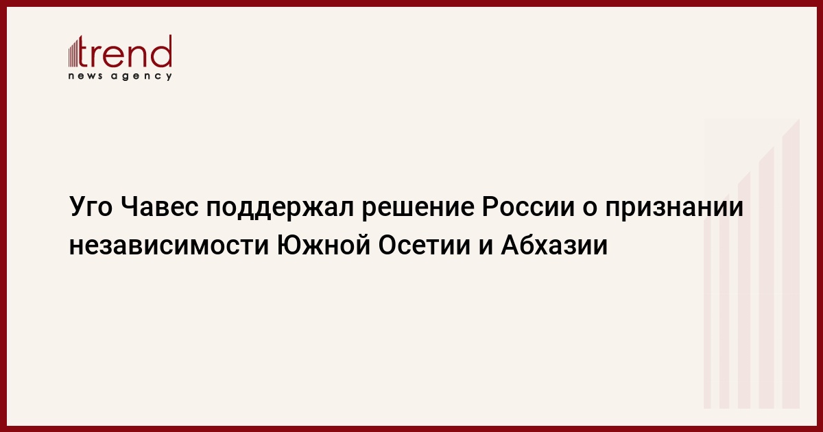 Венесуэла полностью поддерживает решение России о признании независимости Абхазии и Южной Осетии, заявил президент страны Уго Чавес, передает Интерфакс .
