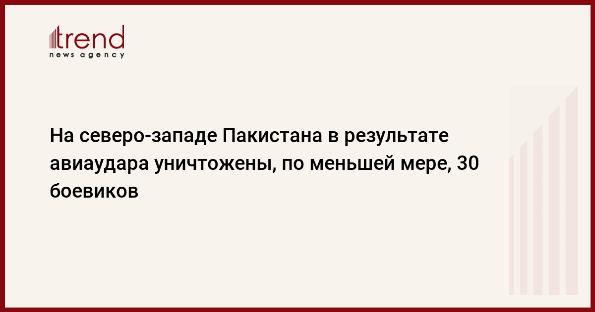 В результате спецоперации на северо-западе Пакистана вооруженные силы страны уничтожили, по меньшей мере, 30 боевиков, передает РБК. По сообщению местных властей, накануне военный истребитель нанес ракетный удар по укрытию боевиков в долине Сват, уничтожив при этом тайный склад с оружием. В свою очередь, представитель движения "Талибан" Муслим Хан заявил, что в результате удара погибли восемь человек, включая местного командира, передает Associated Press.