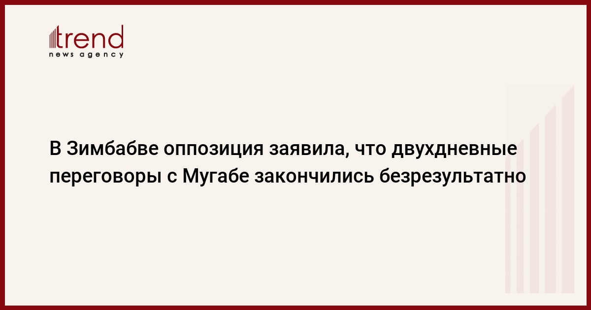 Двухдневные переговоры по разрешению политического и экономического кризиса в Зимбабве между лидером Движения за демократические перемены Морганом Цвангираи и президентом страны Робертом Мугабе закончились безрезультатно.