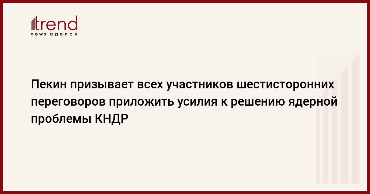 Китай призывает всех участников шестисторонних переговоров приложить совместные усилия в решении возникшей проблемы в рамках денуклеаризации Корейского полуострова, цитируют местные СМИ официального представителя МИД КНР Цзян Юй, передает Интерфакс.