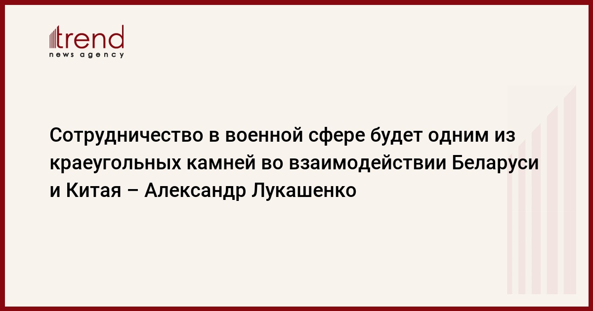 Президент выразил уверенность, что Беларуси и Китаю удастся достичь хороших результатов в военно-техническом сотрудничестве.