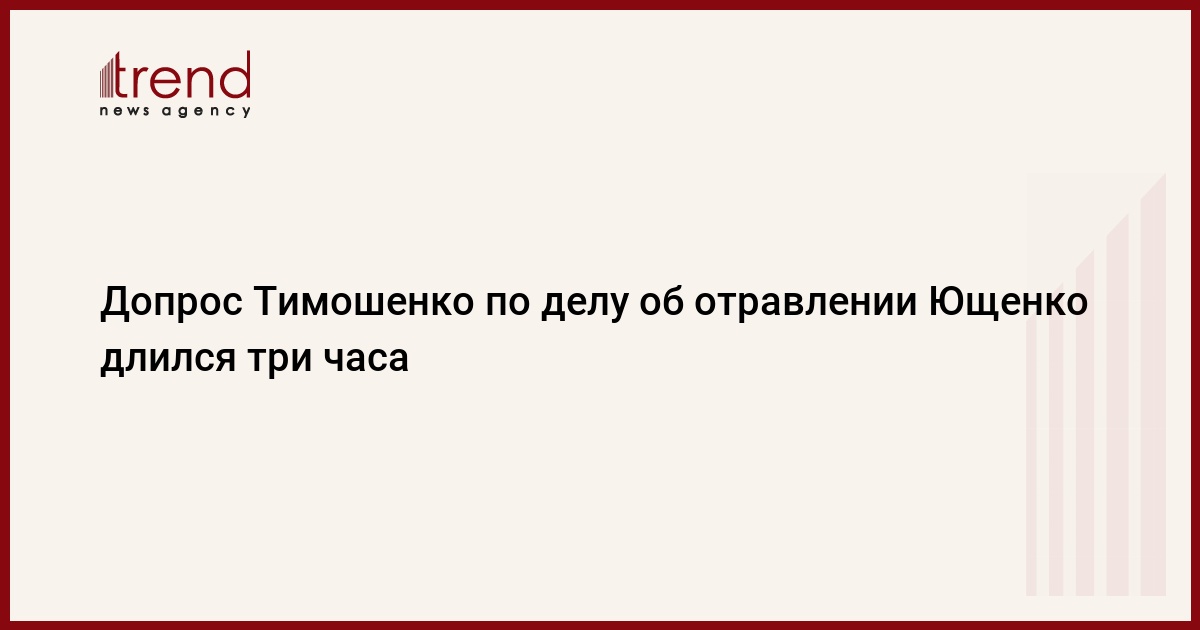 Допрос премьер-министра Украины Юлии Тимошенко в Генеральной прокуратуре по делу об отравлении президента Виктора Ющенко, которое произошло в 2004 году, продолжался в четверг три часа, сообщила журналистам пресс-секретарь премьера Марина Сорока.