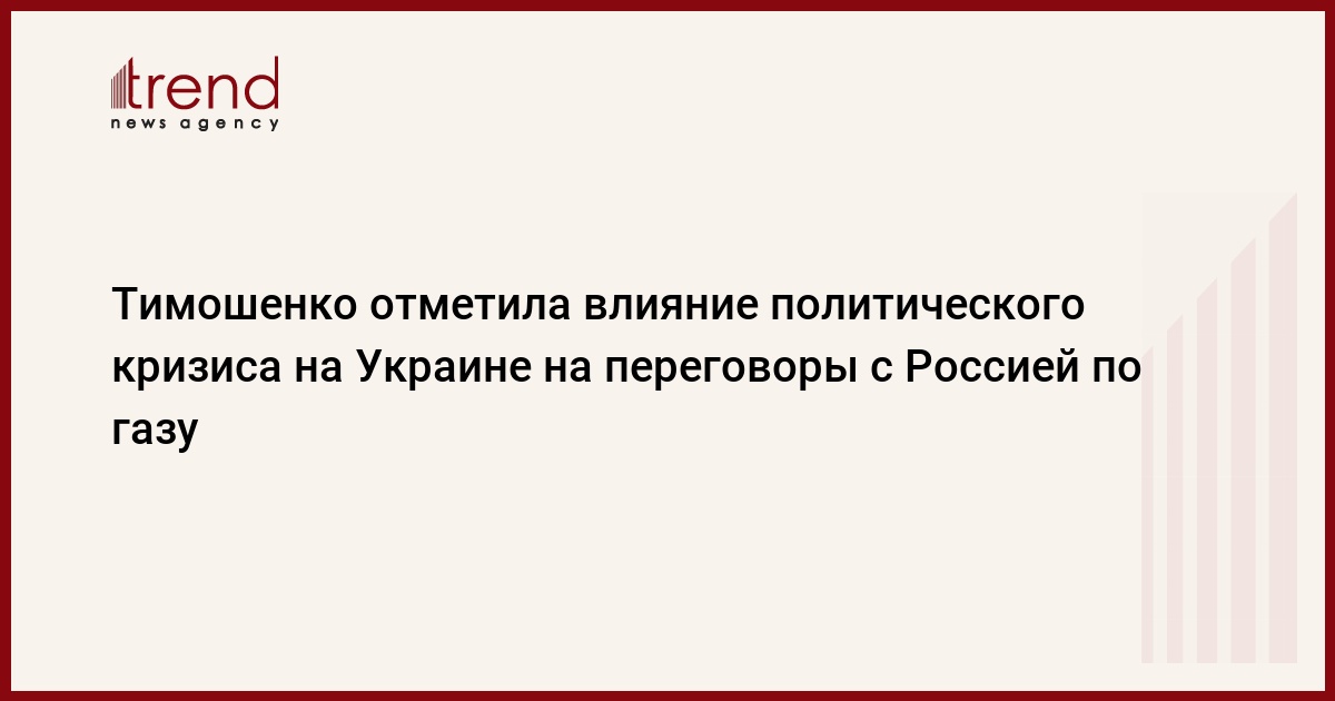 Премьер Украины Юлия Тимошенко заявляет, что политический кризис в стране несколько замедлил украинско-российские переговоры по поставкам природного газа, передает INTERFAX.