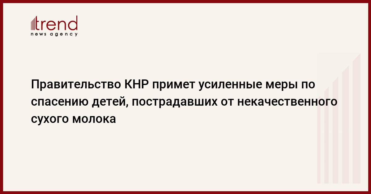 Правительство КНР объявило о принятии усиленных мер по спасению детей, пострадавших в результате добавления в пищу некачественного сухого молока. Все заболевшие дети имеют право на прохождение бесплатного медицинского осмотра и лечения, говорится в распространенном сообщении кабинета министров КНР. Кроме того, китайское правительство примет интенсивные меры по проведению медицинского обследования детей в удаленных районах страны, передает РБК со ссылкой на Би-би-си. По данным Министерства здравоохранения КНР, в стране уже зафиксировано более 6 тыс. случаев заболевания детей из-за испорченной молочной смеси, четверо детей погибли.