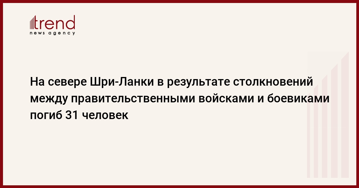 На севере Шри-Ланки в результате столкновений между правительственными войсками и боевиками погиб 31 человек - 27 боевиков движения "Тигры освобождения Тамил Илама" (ТОТИ) и 4 солдата. Еще 24 боевика и 11 солдат получили ранения. Бои прошли в районах Килиноччи, Вавуния и Велиоя, передает РБК со ссылкой на агентство "Синьхуа".