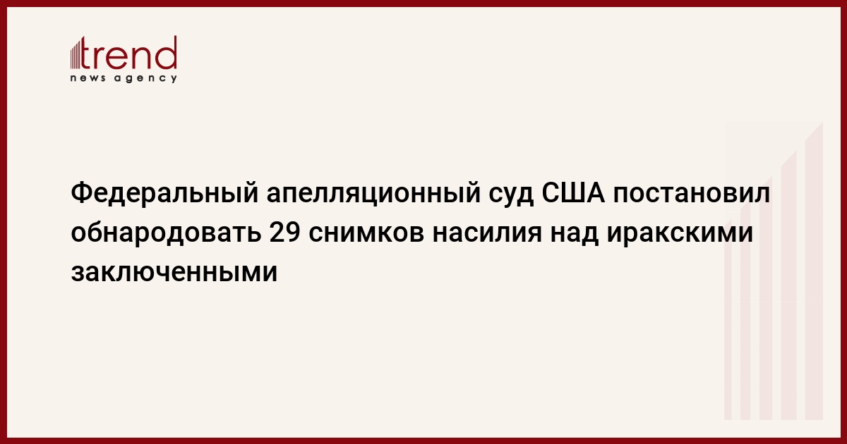 Федеральный апелляционный суд США постановил в понедельник обнародовать 29 фотографий, демонстрирующих издевательства американский солдат над иракскими и афганскими заключенными.