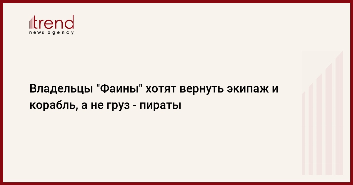 Компания-владелец судна "Фаина", захваченного сомалийскими пиратами, ведет переговоры об освобождении экипажа и судна, а не о возвращении груза - 33 украинских танков Т-72, легких зенитных установок, гранатометов и боеприпасов, сообщило в понедельник агентство Ассошиэйтед Пресс со ссылкой на заявление представителя сомалийских пиратов Сугуле Али.