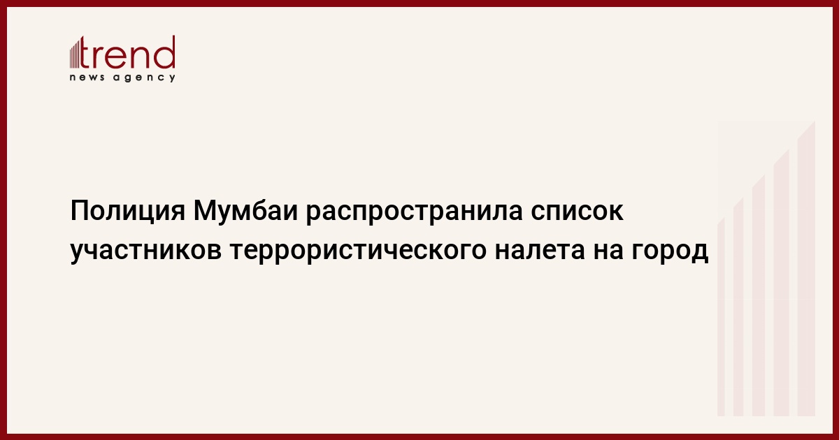 Представители индийских властей в Мумбаи (Бомбее) в среду распространили список 10 нападавших, участвовавших в недавнем налете на город, передает индийский телеканал Ай-Би-Эн.
