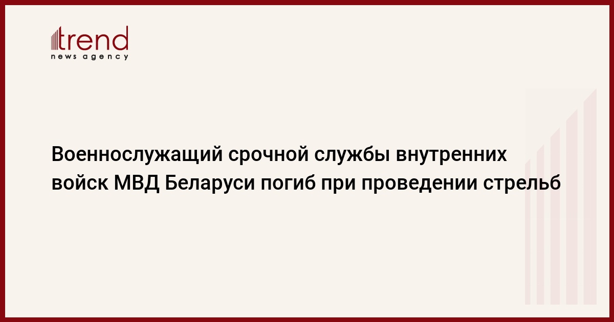 Военнослужащий срочной службы внутренних войск МВД Беларуси погиб при проведении стрельб на территории войскового стрельбища в городе Речица. Об этом корреспонденту БЕЛТА сообщили в пресс-службе внутренних войск МВД Беларуси.