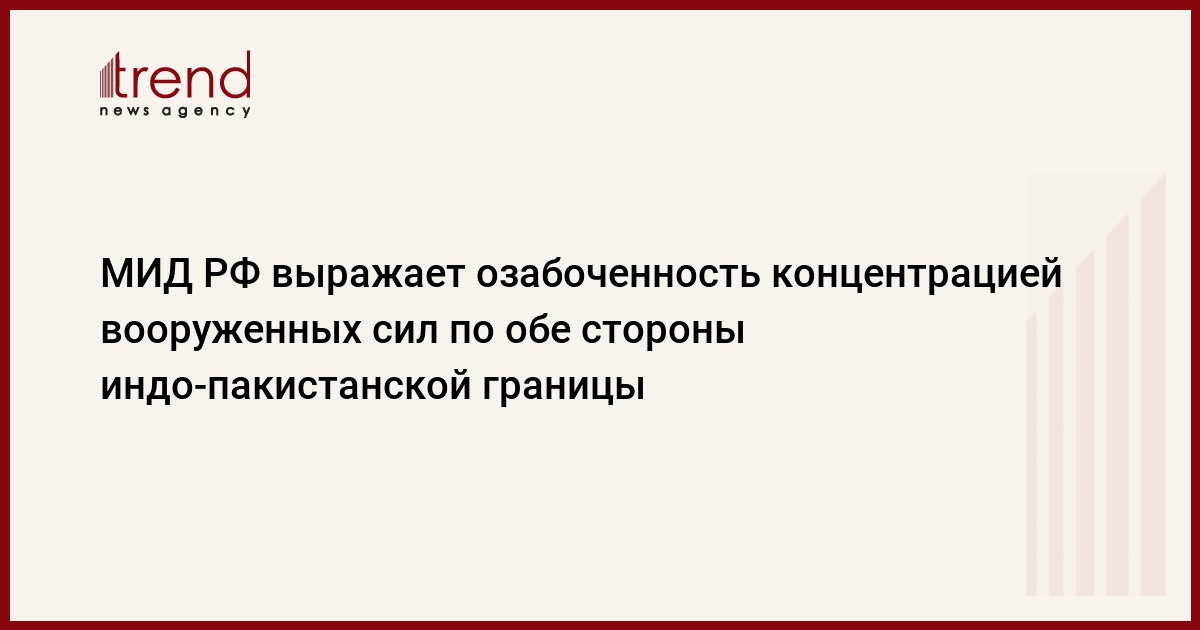 В Москве с крайней озабоченностью воспринимаются сообщения о том, что по обе стороны индо-пакистанской границы происходит масштабная концентрация вооруженных сил и боевой техники. Как отмечается в сообщении Департамента информации и печати МИД РФ, напряженность в этом регионе достигла опасного уровня. "Имеются тревожные свидетельства того, что Нью-Дели и Исламабад не исключают возможности применения друг против друга военной силы. РФ решительно призывает Индию и Пакистан проявить максимальную сдержанность и не допустить развития обстановки на границе по силовому сценарию", - говорится в сообщении, передает РБК.