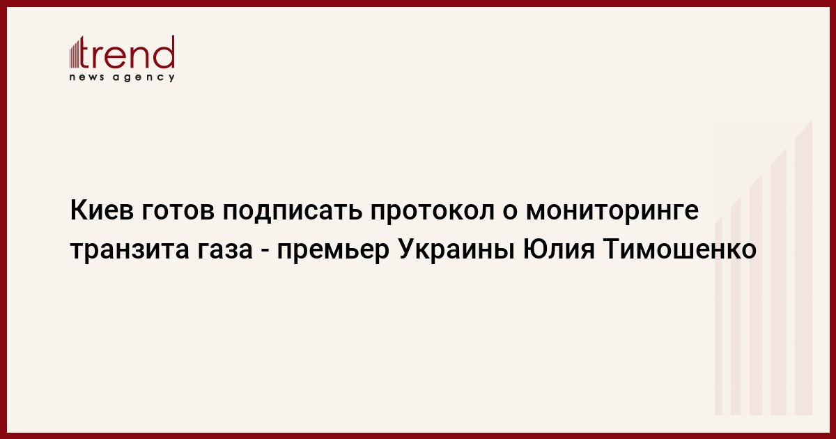 Украина готова подписать российский вариант протокола о взаимном доступе экспертов на газоизмерительные станции, которые находятся как на территории России, так и Украины, заявила премьер Украины Юлия Тимошенко по итогам встречи с чешским коллегой Миреком Тополанеком.
