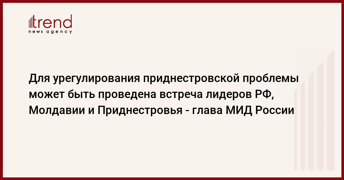 В Москве считают, что для поиска перспектив урегулирования приднестровской проблемы может потребоваться встреча лидеров России, Молдавии и Приднестровья Дмитрия Медведева, Владимира Воронина и Игоря Смирнова, заявил глава МИД РФ Сергей Лавров.