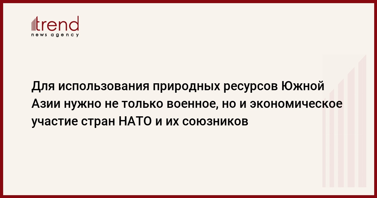 Азербайджан, Баку, 4 апреля /корр. Trend Д.Ибрагимова/ Для стабилизации обстановки в Южной Азии и полноценного использования природных ресурсов этого региона нужно не только военное, но и экономическое и гуманитарное участие стран НАТО и их союзников.