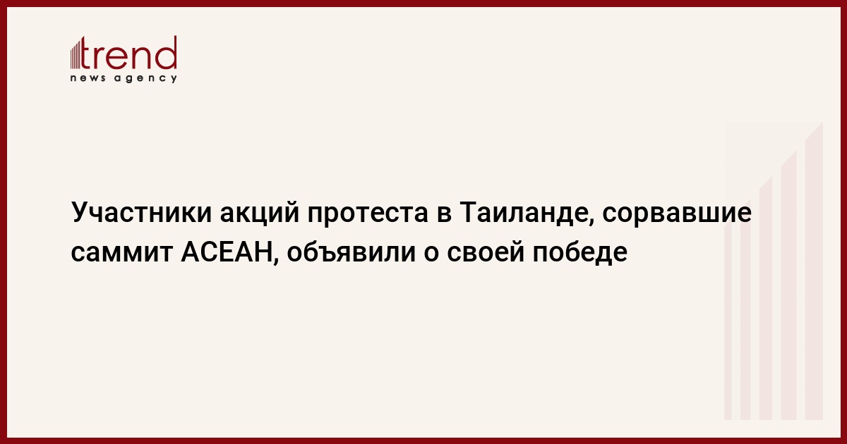 Участники акций протеста в Таиланде, сорвавшие саммит Ассоциации стран Юго-Восточной Азии (АСЕАН), объявили решение об отмене саммита своей победой и покинули здание отеля, в котором должна была состояться встреча, передает Associated Press. Лидер демонстрантов, Джакрапоб Пенкаир, заявил, что оппозиция выиграла, но акции протеста будут продолжаться, до тех пор пока премьер-министр страны Абхисита Ветчачива не уйдет в отставку, передает РБК.