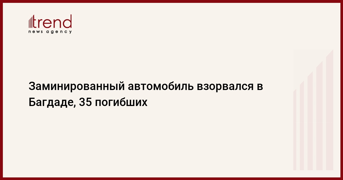 Начиненный взрывчаткой автомобиль взорвался в среду в одном из районов на северо-западе столицы Ирака, погибли 35 человек, 72 человека получили ранения, сообщает агентство Рейтер со ссылкой на представителей полиции, пишет РИА Новости.