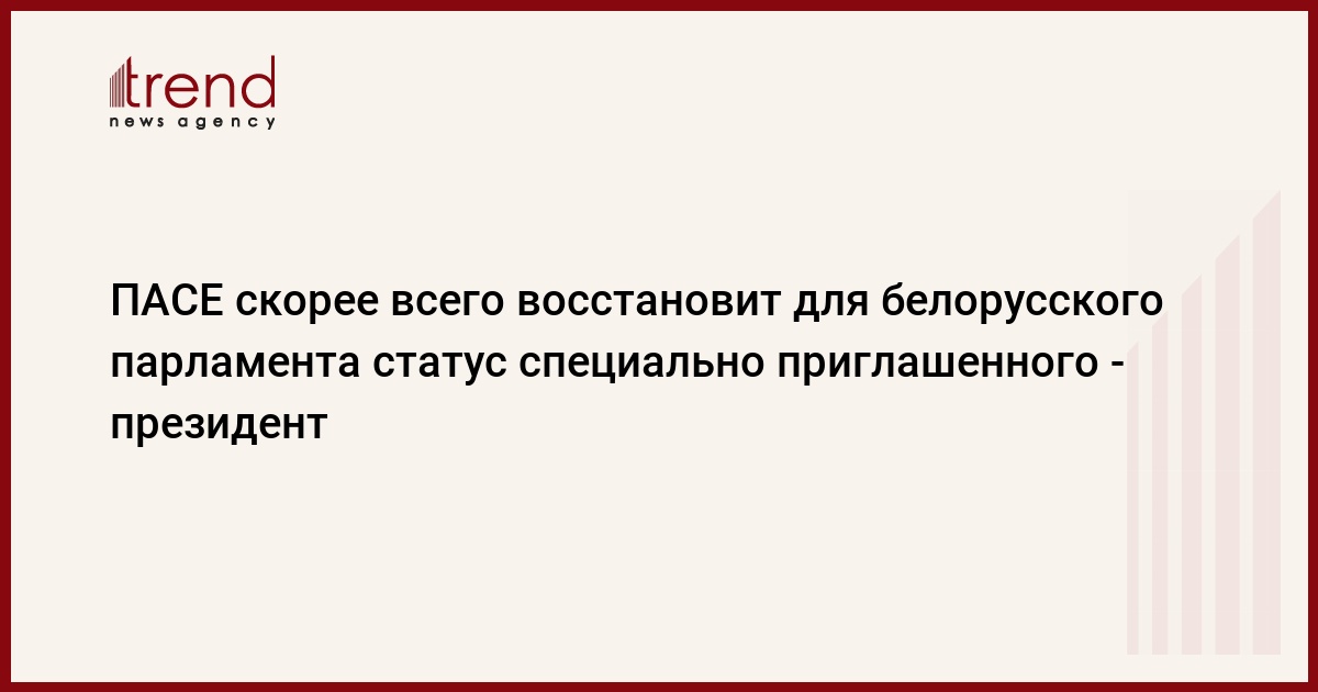ПАСЕ скорее всего примет резолюцию по восстановлению для белорусского парламента статуса специально приглашенного. Об этом заявил сегодня на открытии в Страсбурге летней сессии Парламентской Ассамблеи Совета Европы президент ПАСЕ Луис Мариа де Пуч, передает корреспондент БЕЛТА.