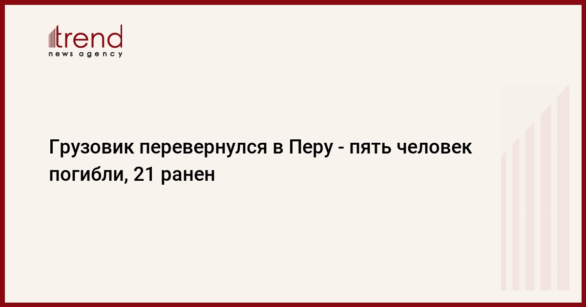 По меньшей мере пять человек погибли, 21 получил ранения и был госпитализирован при аварии грузовика в среду на юге Перу, сообщила перуанская радиостанция RPP.