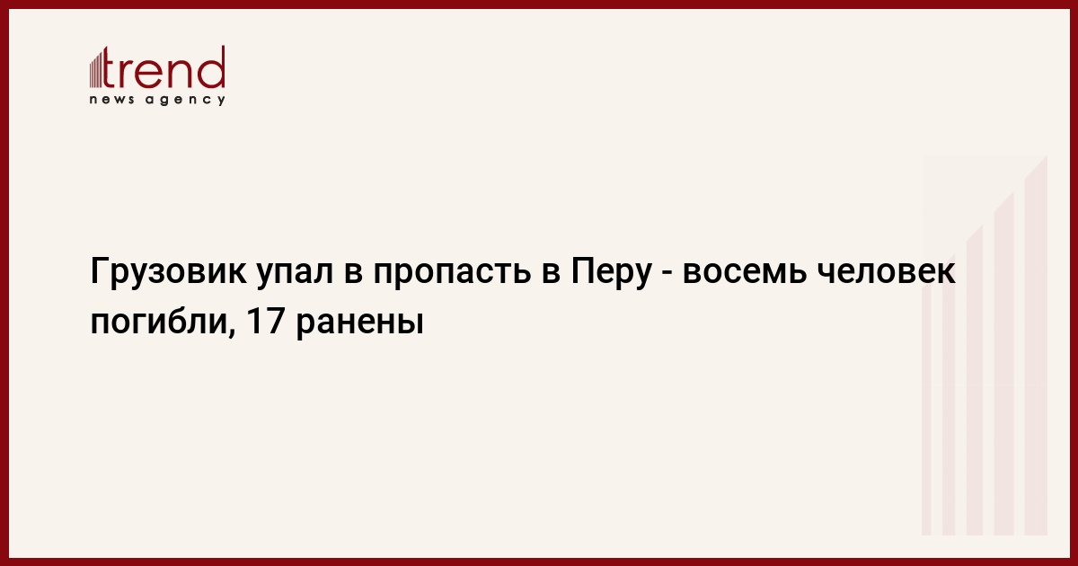 По меньшей мере восемь человек погибли и 17 получили ранения и были госпитализированы при падении грузовика в пропасть на юге Перу в 1200 километрах к северу от столицы страны Лимы, сообщила перуанская радиостанция RPP.