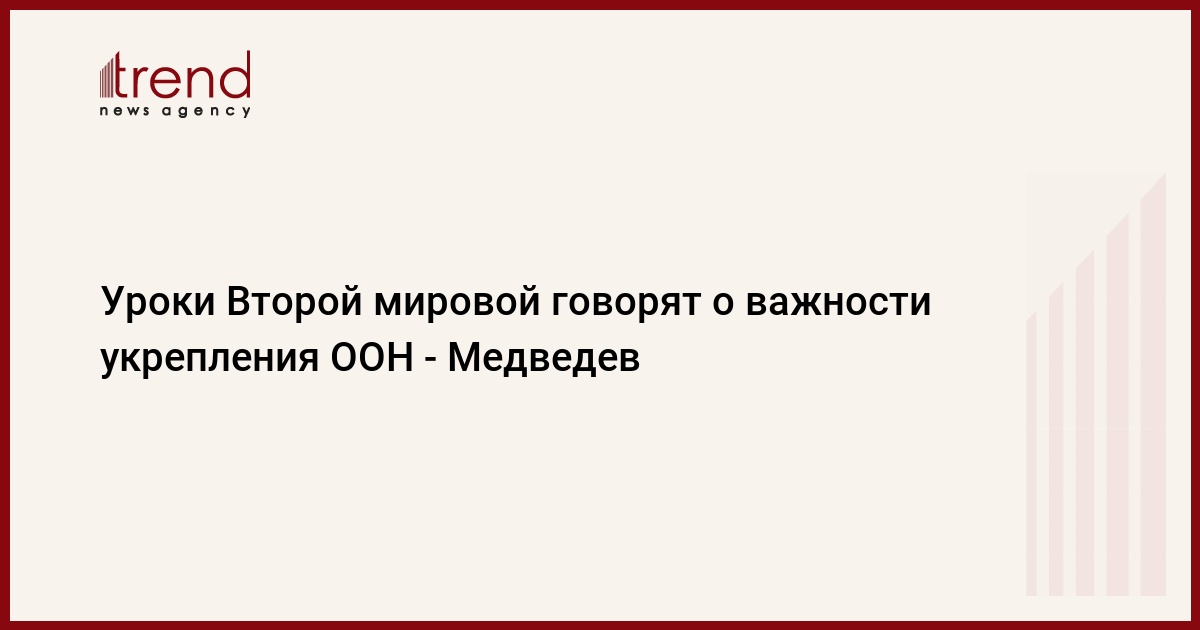 Уроки Второй мировой войны свидетельствуют о важности укрепления ООН на основе соблюдения всеми странами норм международного права, в том числе для борьбы с такими современными угрозами, как терроризм, распространение оружия массового уничтожения, трансграничная оргпреступность и национальная нетерпимость, сообщают РИА Новости.