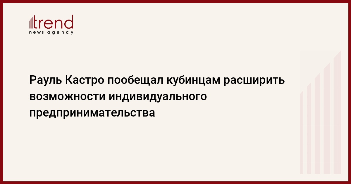 "Совет министров страны принял решение расширить (возможности) индивидуальной трудовой деятельности, отменив некоторые действующие ограничения на выдачу новых лицензий и на коммерциализацию отдельных видов продукции, сделав более гибкой систему найма рабочей силы", - заявил Рауль Кастро, выступая в парламенте страны, пишет РИА Новости.