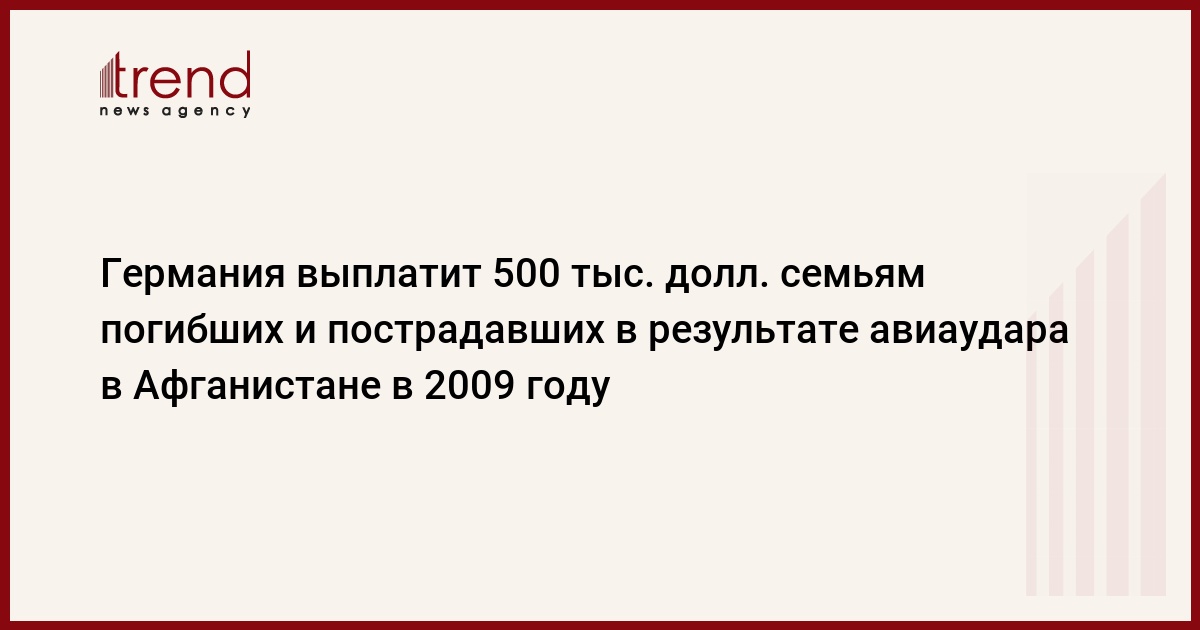 Германия выплатит по 5 тыс. долл. семьям погибших и пострадавших в результате авиаудара в Афганистане в 2009г., нанесенного немецкими
