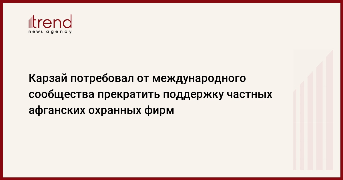 Президент Афганистана Хамид Карзай потребовал от международного сообщества прекратить поддержку частных охранных фирм в стране. По его словам, эти компании "создали параллельную структуру сил безопасности, которая конкурирует с местной армией и полицией", передает Associated Press.