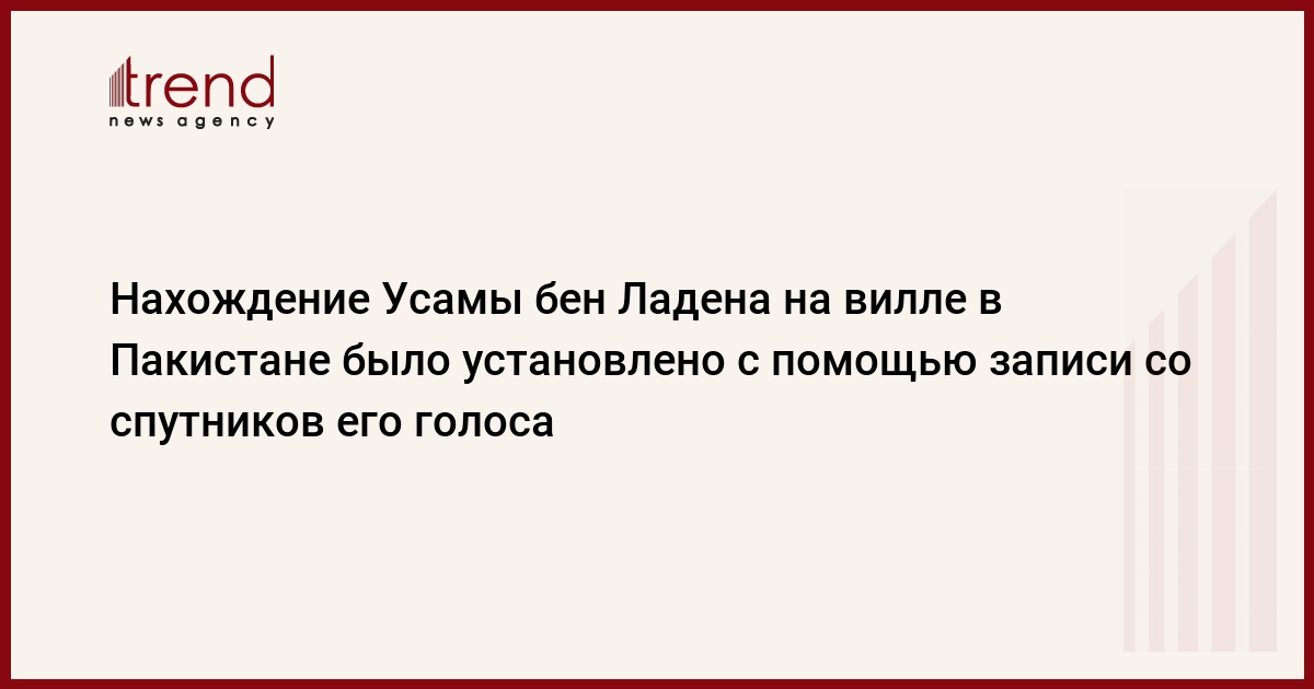 Факт нахождения Усамы бен Ладена на вилле в пакистанском городе Абботтабаде был установлен спецслужбами США с помощью четырех спутников-шпионов, которые позволили идентифицировать во внутренних помещениях здания его голос. Об этом сообщает сегодня лондонский еженедельник "Санди таймс" со ссылкой на выходящую в ближайшие дни книгу "Цель - Джеронимо" /Seal Target Geronimo/, написанную Чаком Пфарером - бывшим главой спецподразделения морской пехоты Seal Team-6. Именно его бойцы совершили 1 мая налет на виллу и ликвидировали находившегося там Усаму бен Ладена.