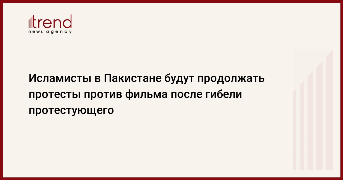Как сообщали СМИ, исламские партии организовали в воскресенье многотысячную демонстрацию в районе американского консульства в крупнейшем пакистанском городе Карачи. Протестующие попытались прорваться к зданию консульства, полиция в ответ применила дубинки, водометы и слезоточивый газ, несколько раз открывала огонь в воздух. В результате столкновений с полицейскими был убит один из участников протеста, еще по меньшей мере 11 человек получили серьезные травмы и ранения.