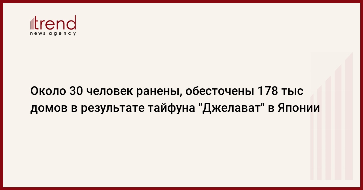 Почти 30 человек получили травмы различной тяжести в результате обрушившегося на японскую префектуру Окинава мощного тайфуна "Джелават", обесточены более 178 тысяч домов, передает телеканал NHK.
