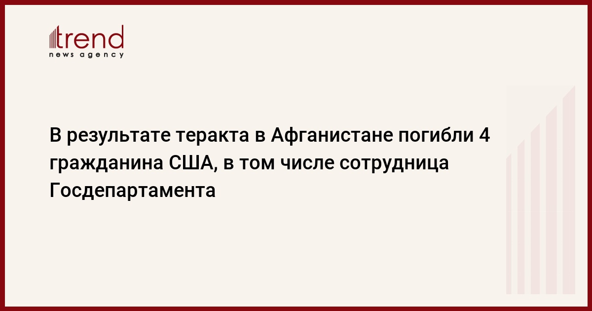 В результате теракта в Афганистане погибли 4 гражданина США, в том числе сотрудница Государственного департамента США, передает РБК со ссылкой на официальное заявление внешнеполитического ведомства США.