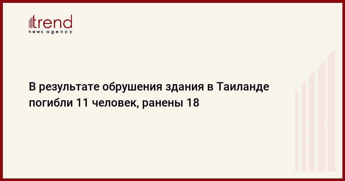 В результате обрушения четырехэтажного здания в Таиланде погибли 11 человек, ранения получили 18, передает во вторник РИА Новости со ссылкой на агентство Франс Пресс.