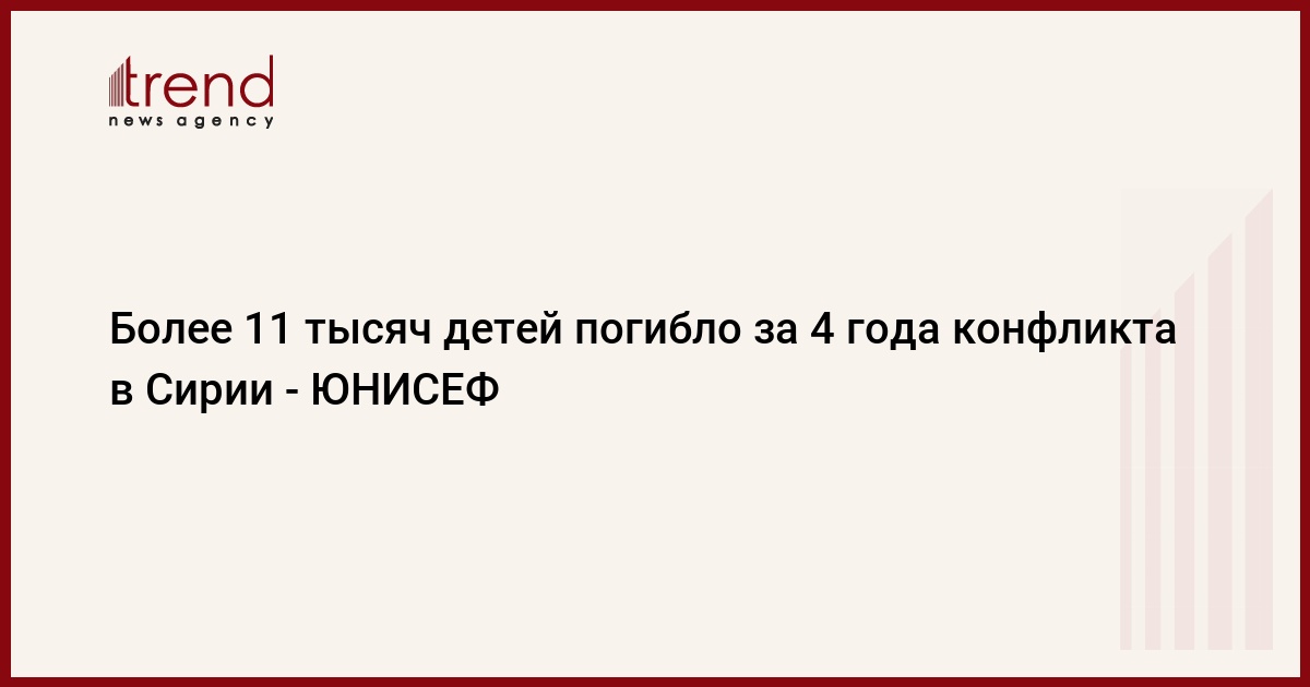 Количество детей, погибших за 4 года конфликта в Сирии, превысило 11 тысяч, еще 7,6 миллионов детей пострадали или оказались вынужденными переселенцами, заявила РИА Новости представитель Детского фонда ООН (ЮНИСЕФ) в Сирии Ханна Сингер (Hanna Singer).
