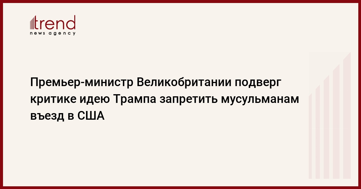 Глава правительства "совершенно не согласен с Дональдом Трампом", заявила официальный представитель Кэмерона. Премьер, по ее словам, расценил высказывание Трампа как "провоцирующее разногласия, бесполезное и просто неправильное".