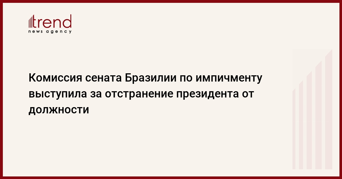 Специальная комиссия Федерального сената (верхней палаты парламента) по импичменту выступила за продолжение процесса отстранения президента Бразилии Дилмы Руссефф от должности, передает ТАСС.