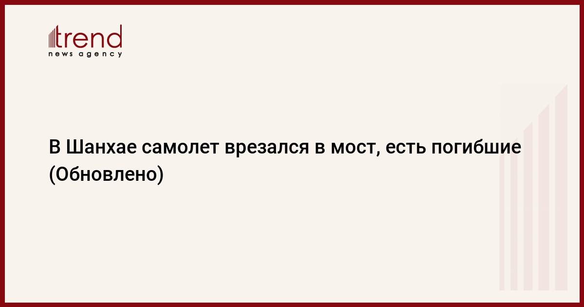 10:25 (GMT+4) Гидросамолет врезался в мост в Шанхае, ведутся работы по спасению шести человек, сообщает в среду Международное радио Китая (CRI), передает РИА Новости.
