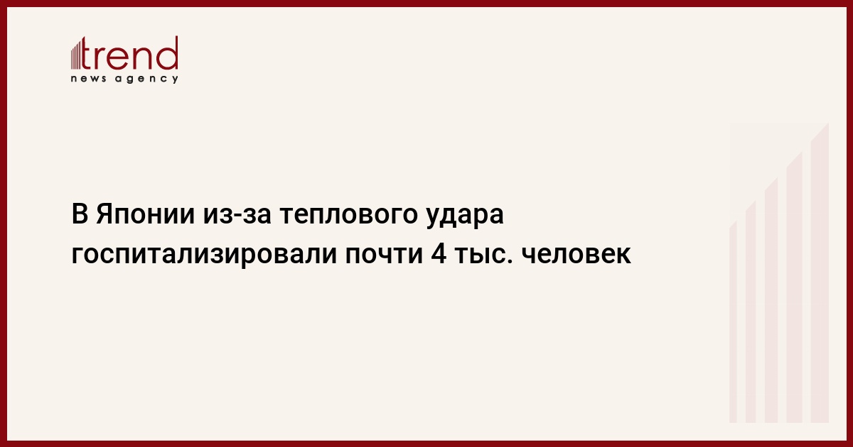 Почти 3,8 тысячи жителей Японии потребовалась скорая помощь за минувшую неделю в связи с подозрениями на тепловой удар от жаркой погоды, двое из них скончались по пути в больницы, свидетельствуют данные министерства внутренних дел страны, передает РИА Новости.