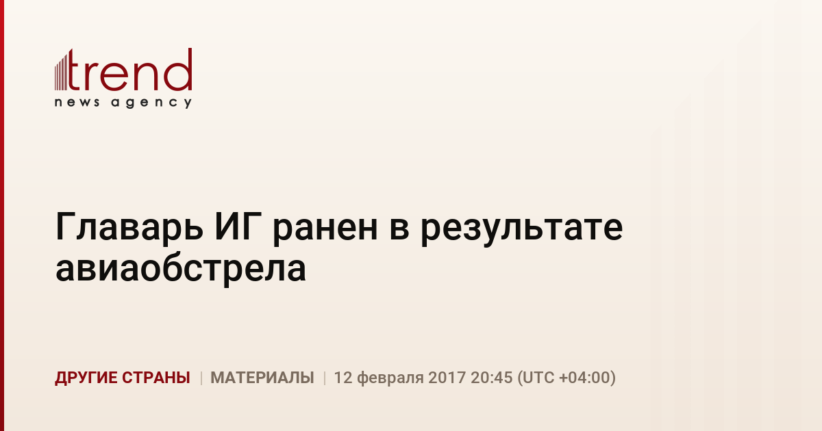 Главарь террористической группировки "Исламское государство" Абу Бакр аль-Багдади получил ранения в результате авиаобстрела позиций боевиков в местечке Эль-Каим на границе Ирака с Сирией, передает ТАСС со ссылкой на телеканал Al Sumaria.